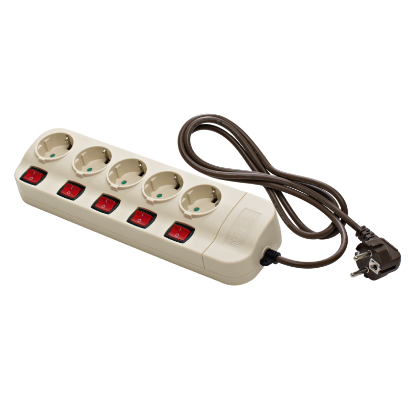 5-Gang Individual Switch Power Extension (1.5M/3M) with Safety Shutter